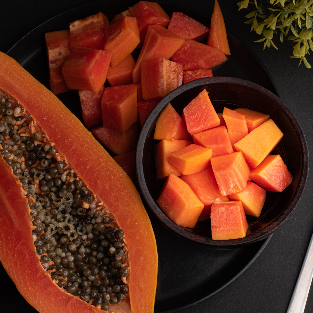 Papayas contain high levels of antioxidants vitamin A, vitamin C, and vitamin E. Diets high in antioxidants may reduce the risk of heart disease.